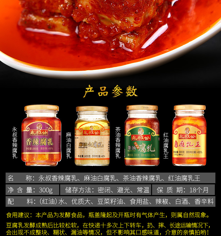 300g*2瓶江西吉安特产永叔公香辣麻油茶油豆腐乳300g瓶装下饭菜白腐乳霉豆