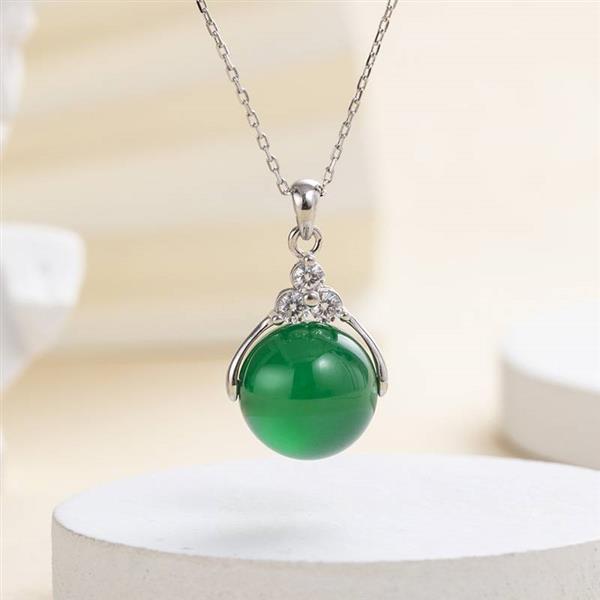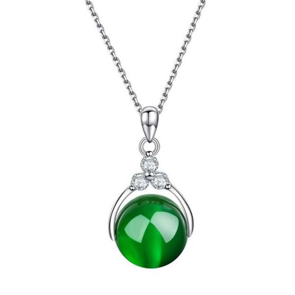 中国黄金 花朵绿玉髓路路通吊坠(送S925银链)