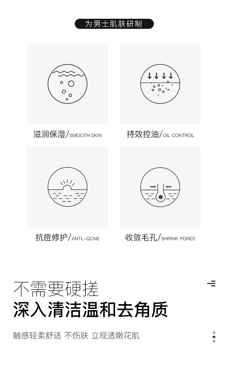 莉兹男士劲爽去角质慕斯深层清洁毛孔去死皮改善粗糙男护肤洗面奶