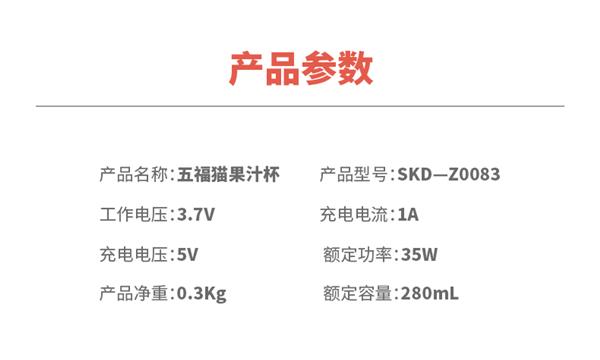 SKD思嘉思达-五福猫果汁杯