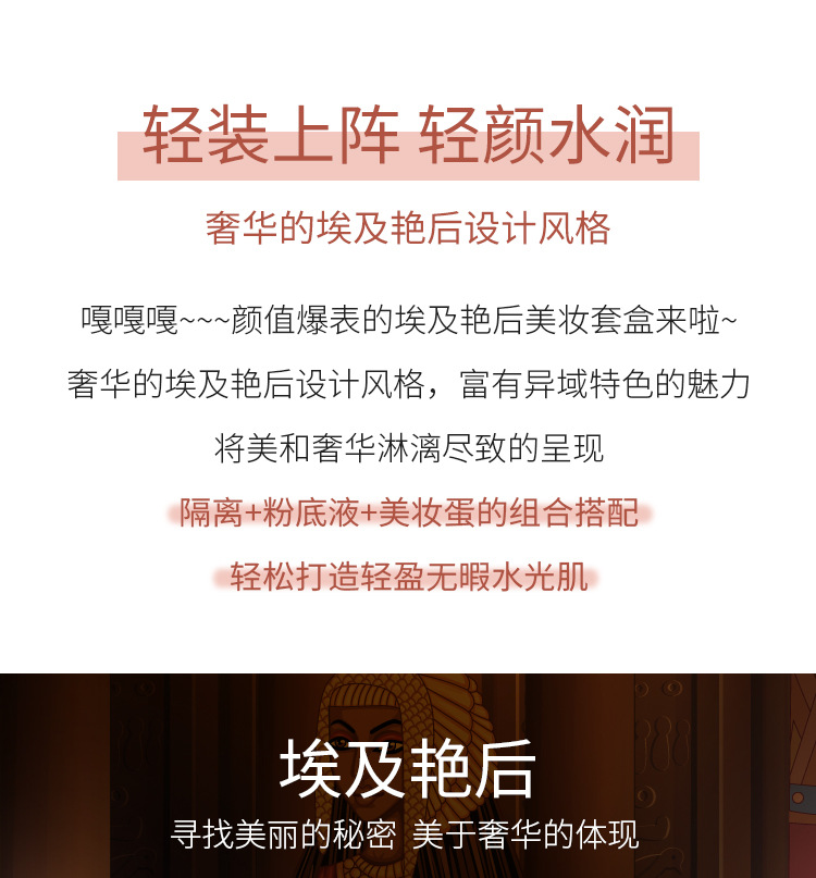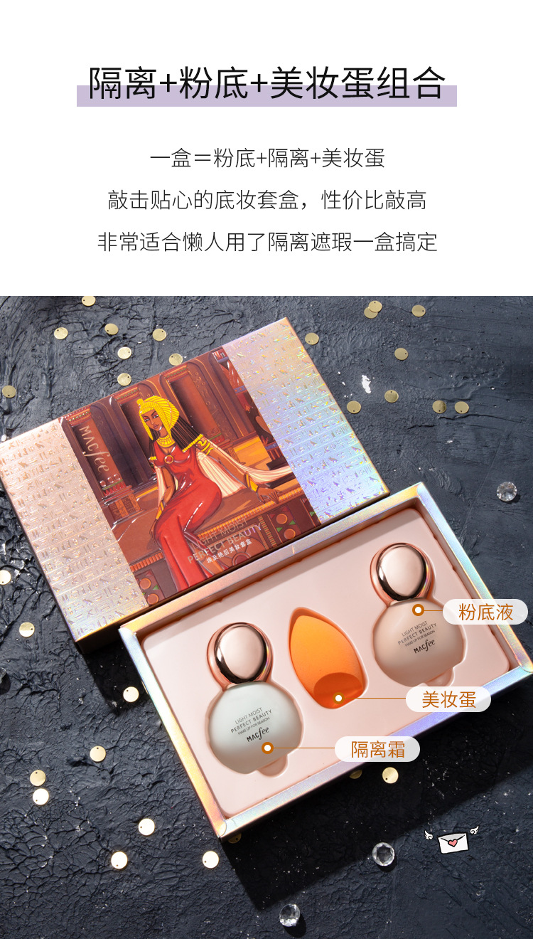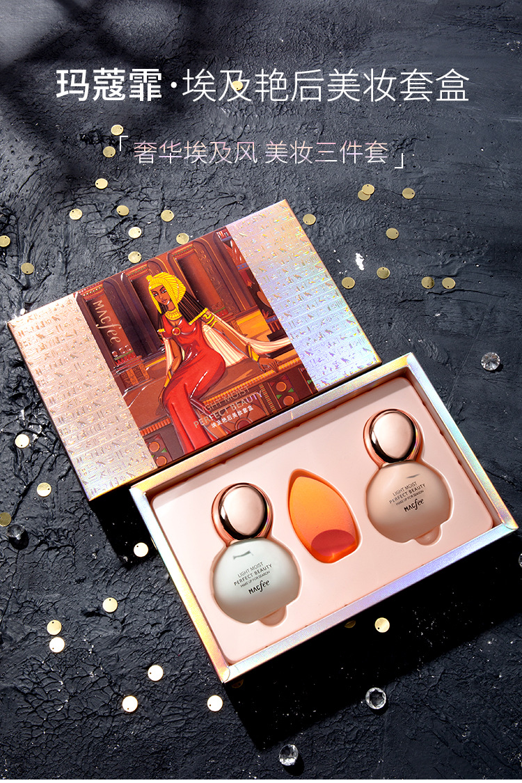 玛蔻霏埃及艳后美妆套盒小灯泡遮瑕粉底液隔离霜套装持久隐形毛孔