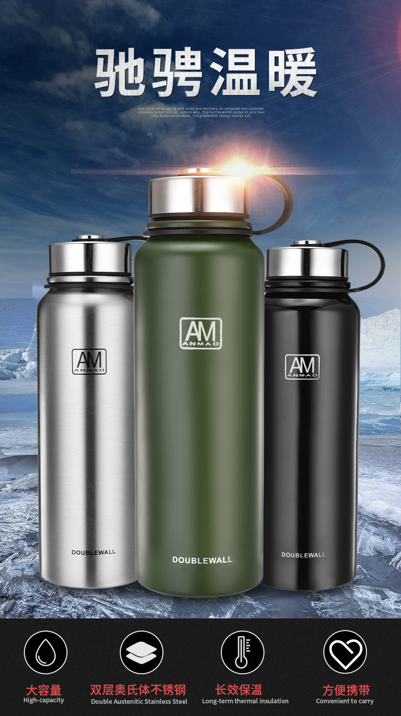 新款304不锈钢真空保温杯便携大容量户外运动水壶