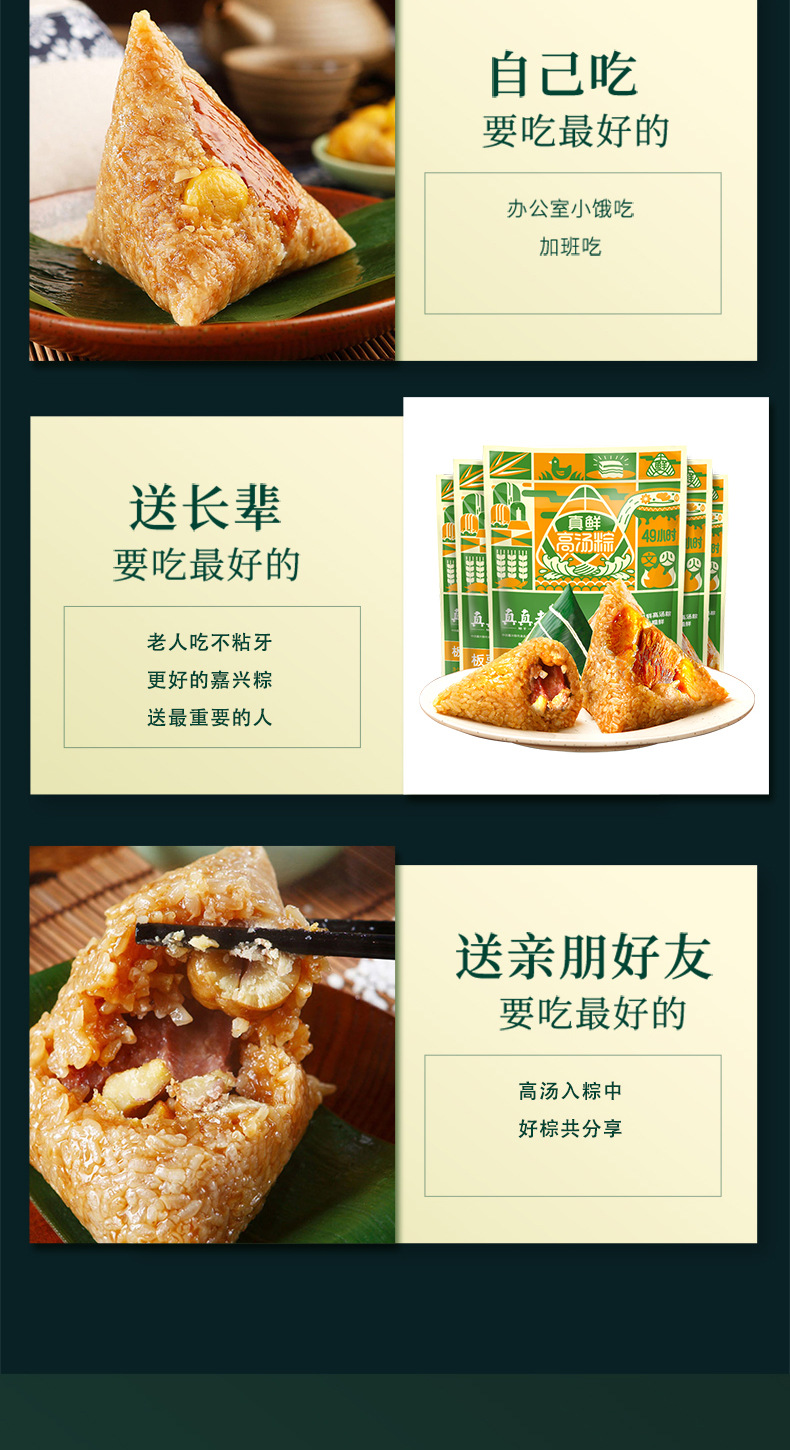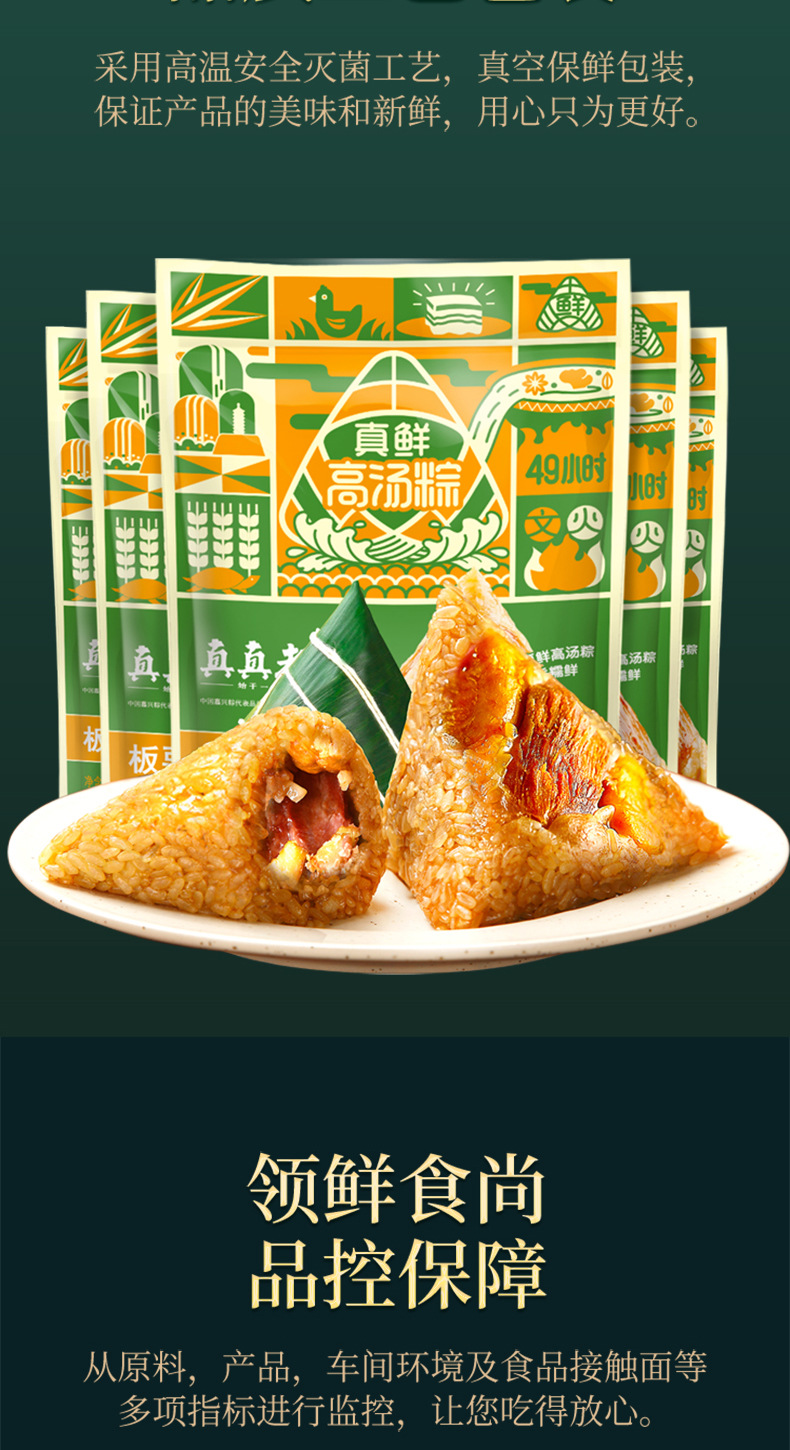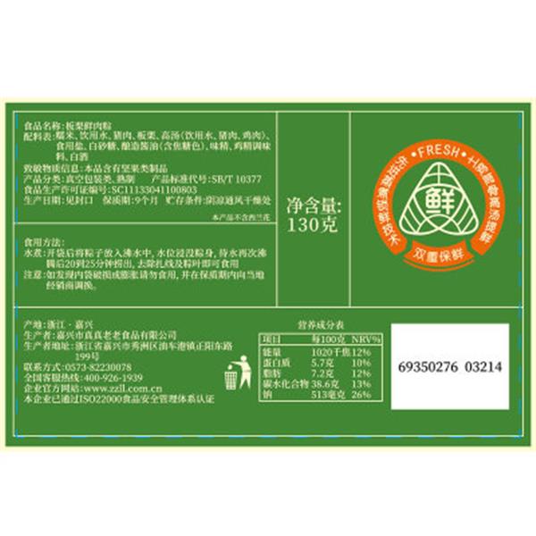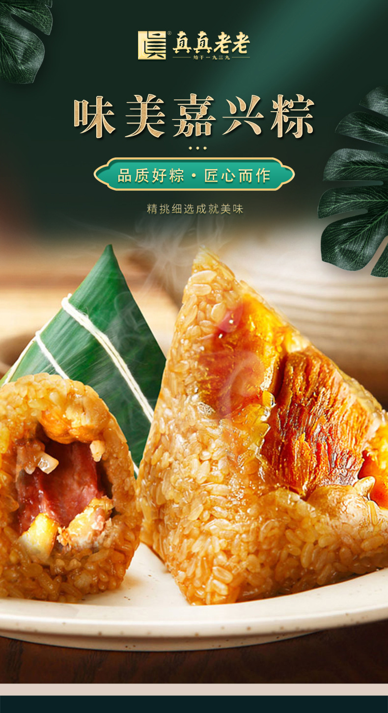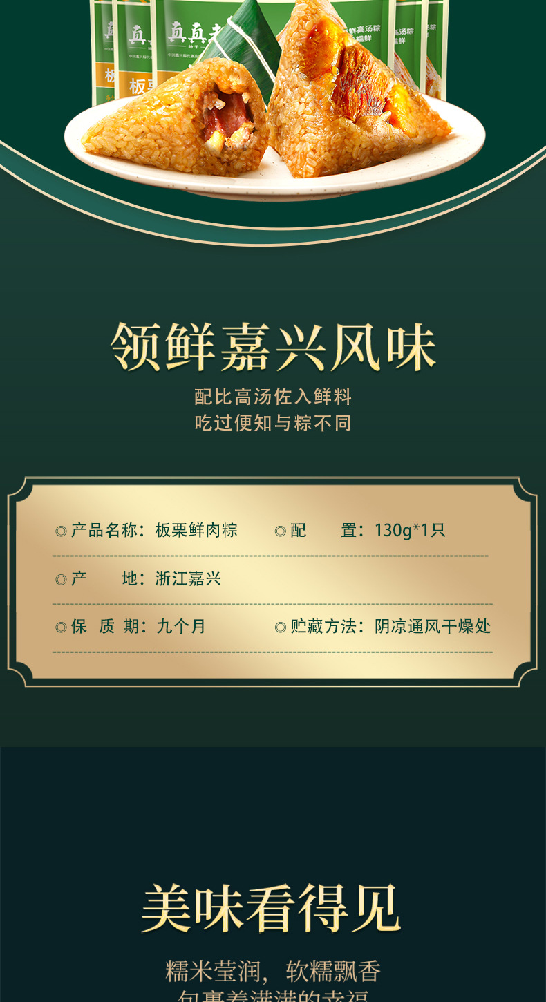 130g/袋*2袋 真真老老真空栗子肉粽130g浙江特产端午节嘉兴粽子速食早餐