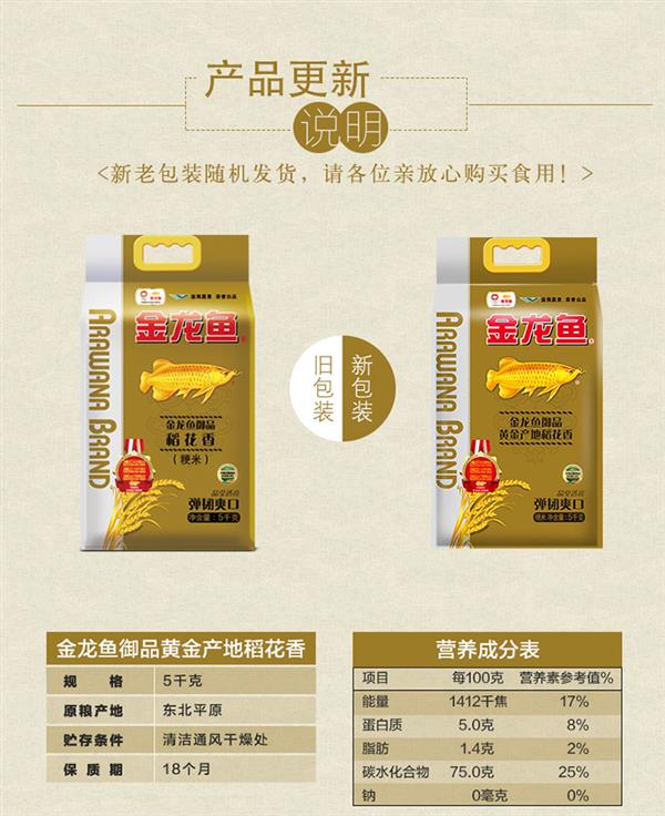 金龙鱼大米 祥云瑞鹤五常大米5KG