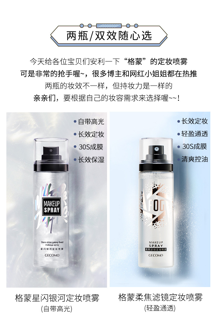 格蒙星闪银河柔焦滤镜定妆喷雾 一喷成膜快速定妆水光 雾面妆效