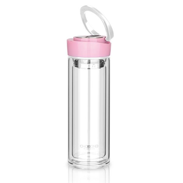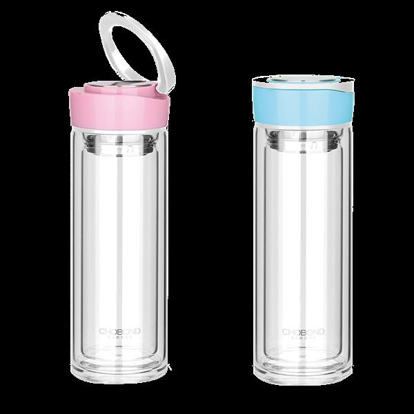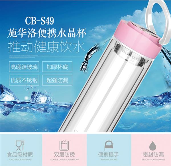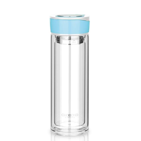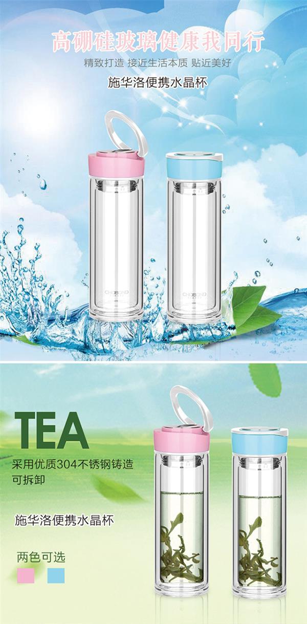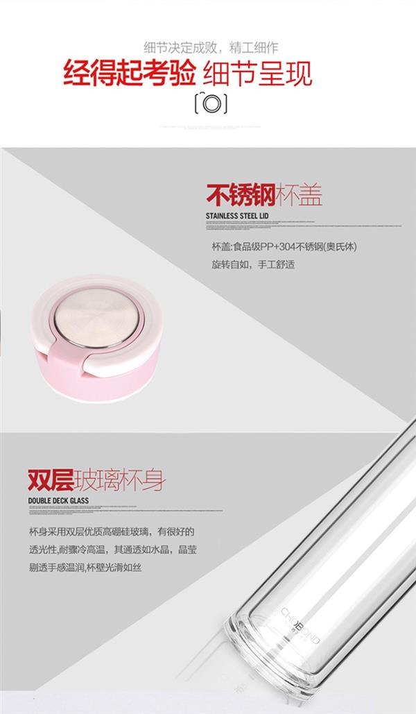 双层耐热高硼硅玻璃杯男女皮纹盖式泡茶水杯礼品