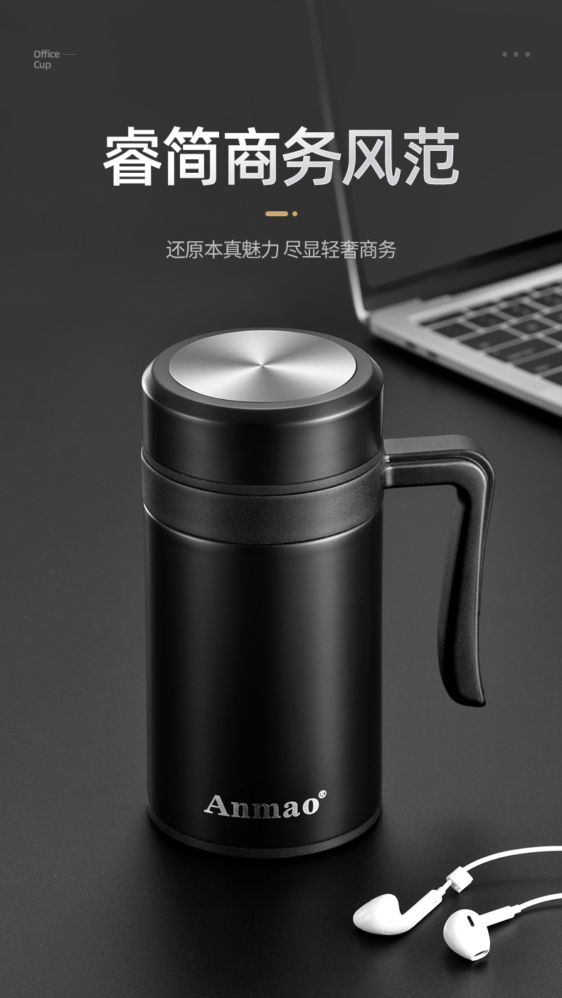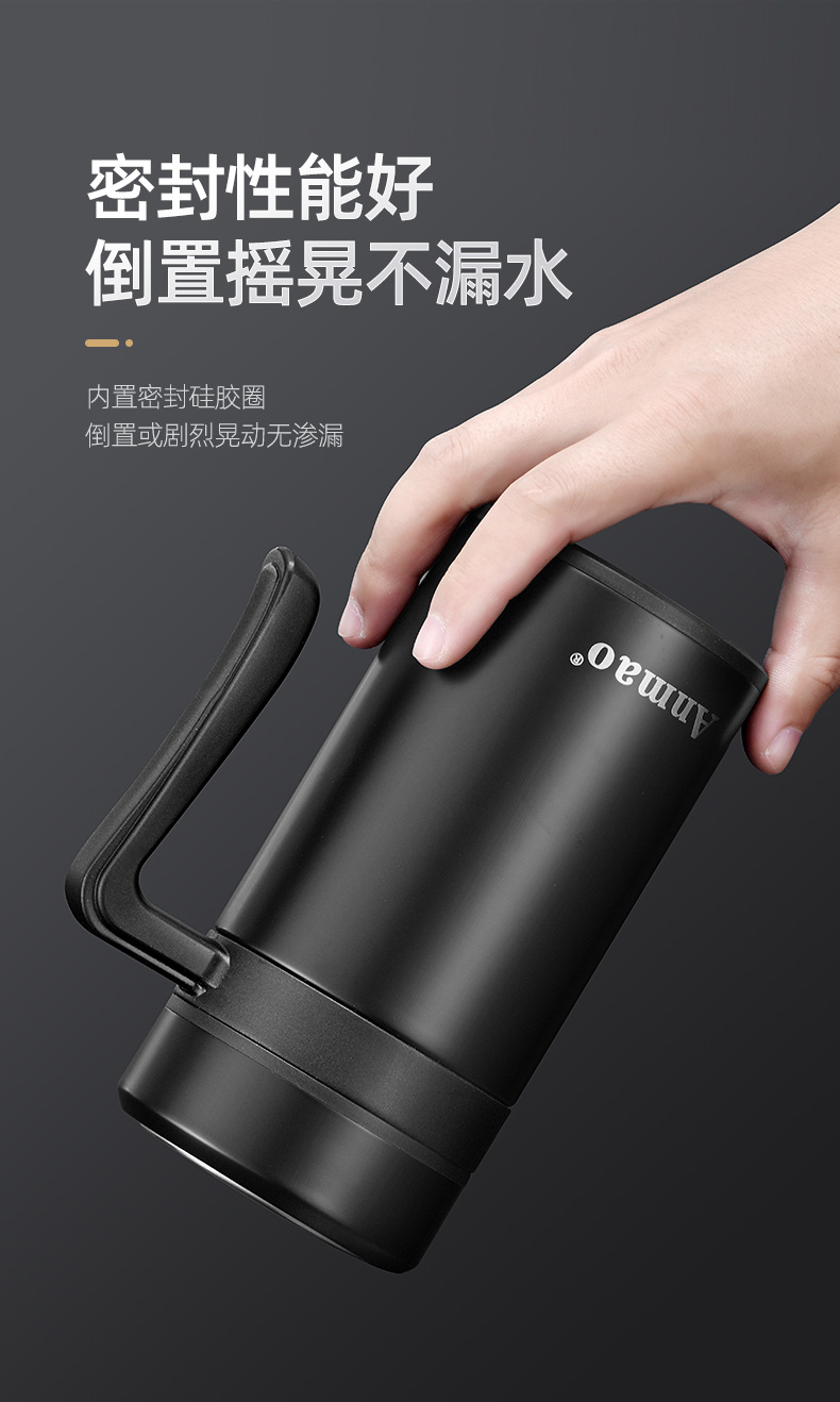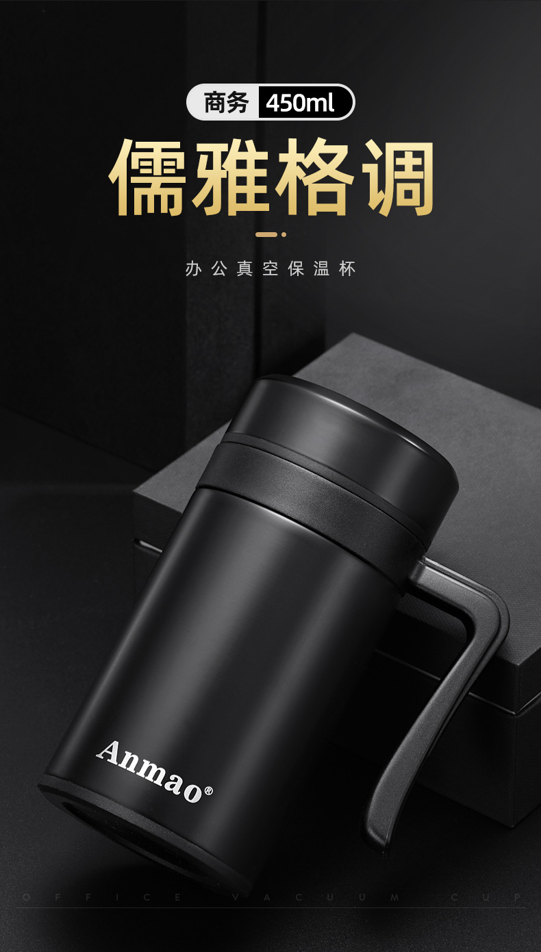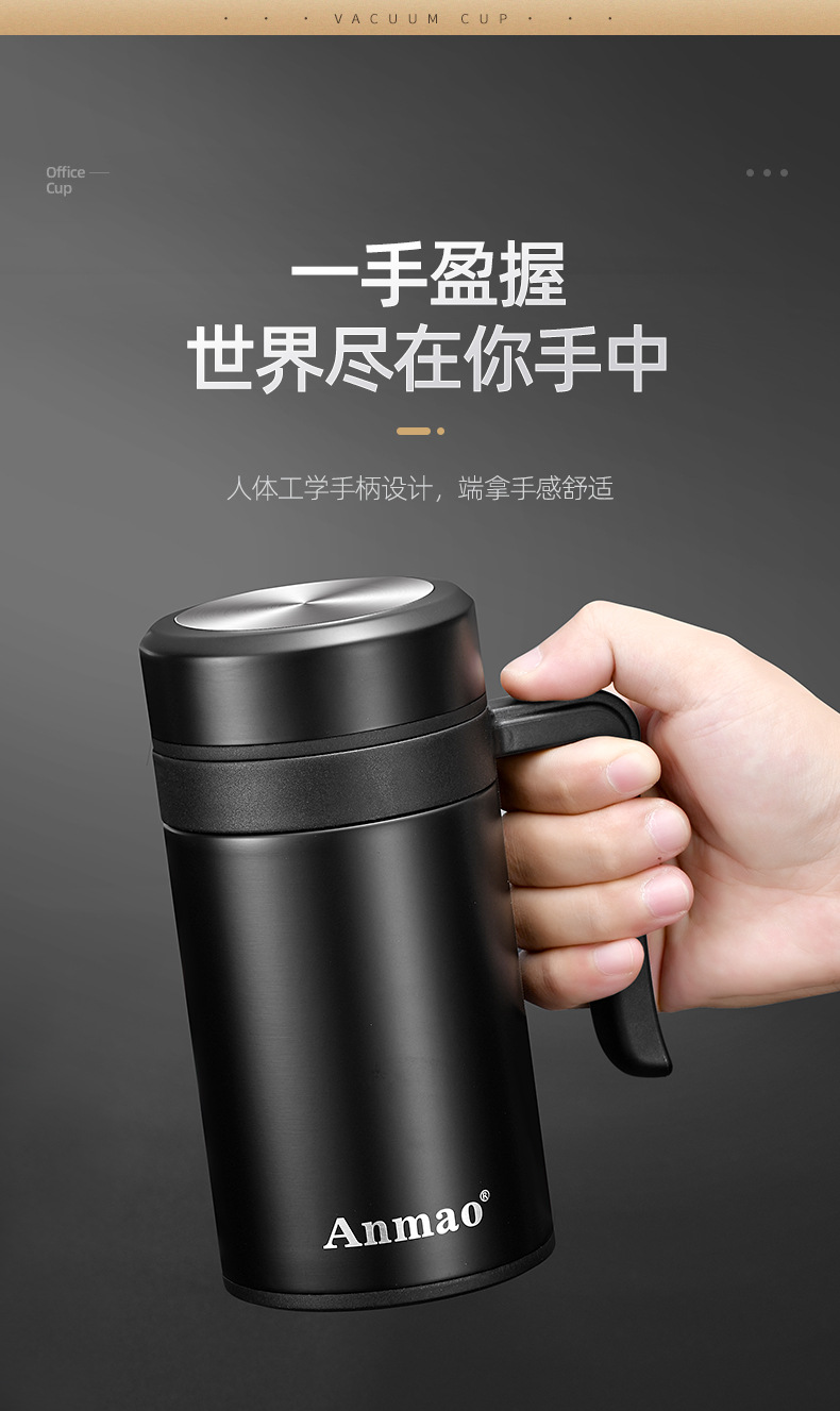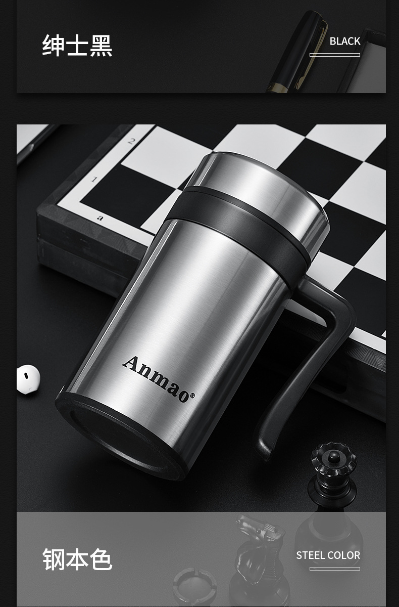 安茂双层304不锈钢保温杯办公带手柄过滤网泡茶杯子