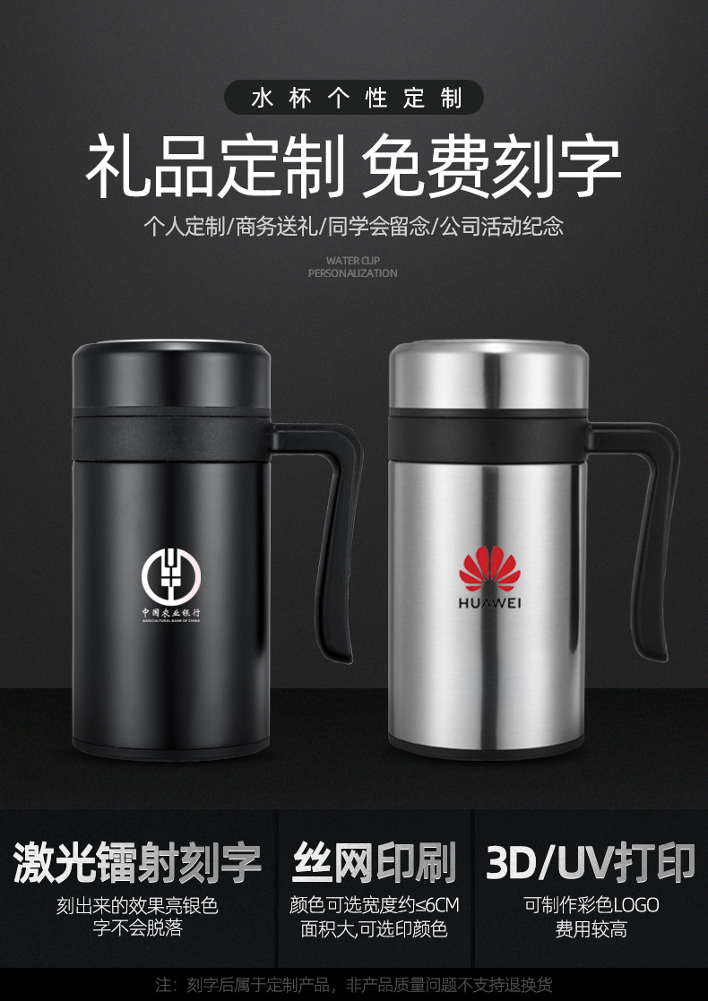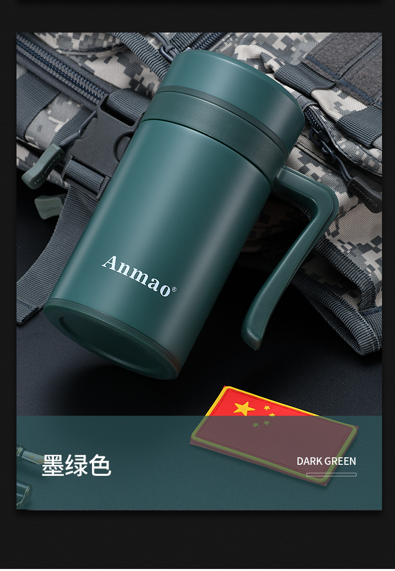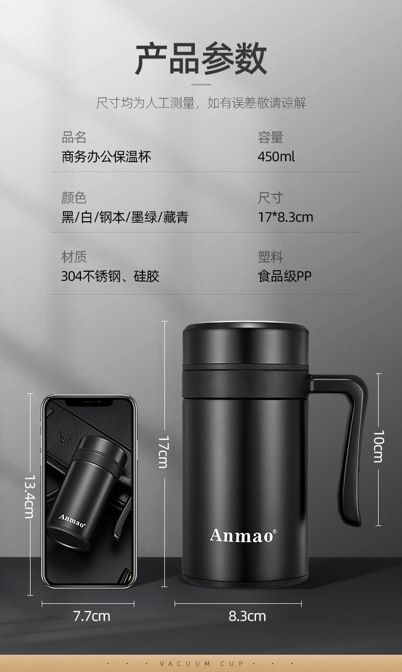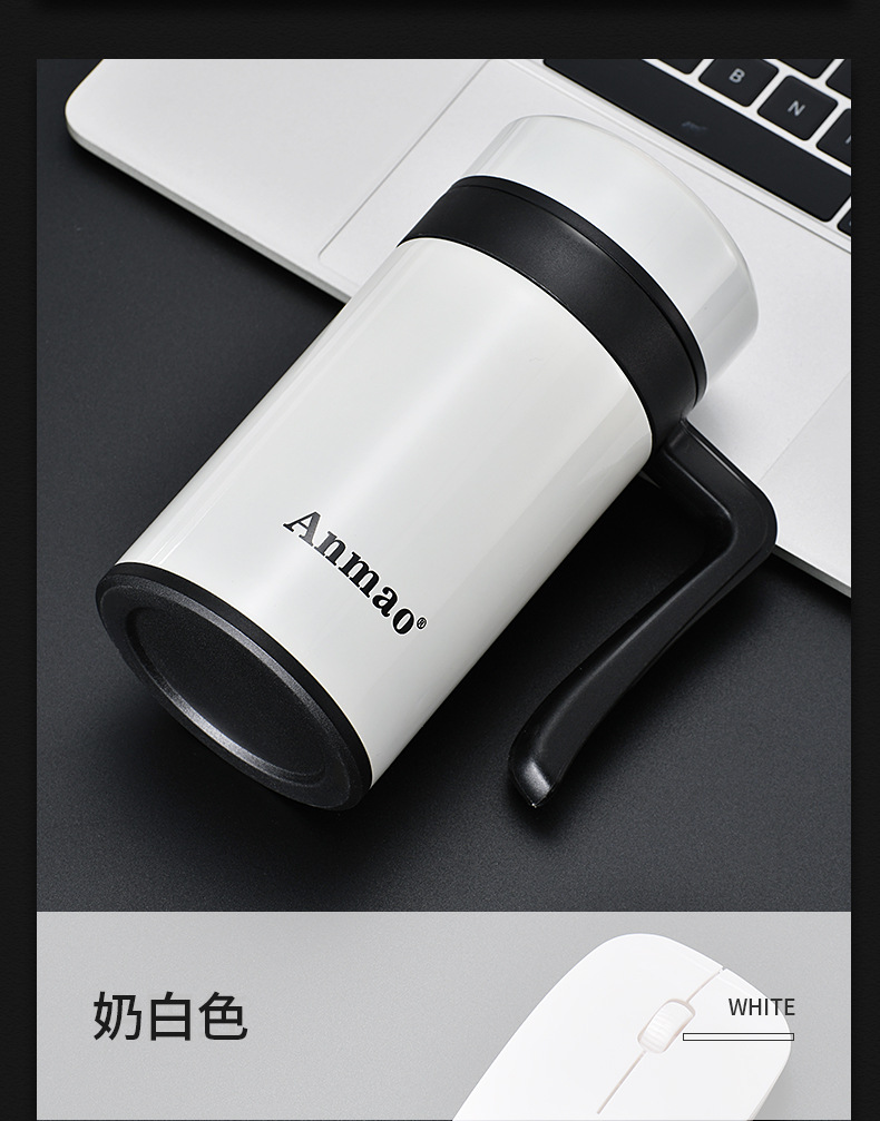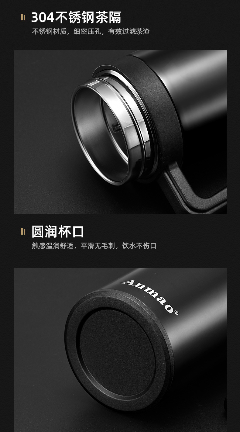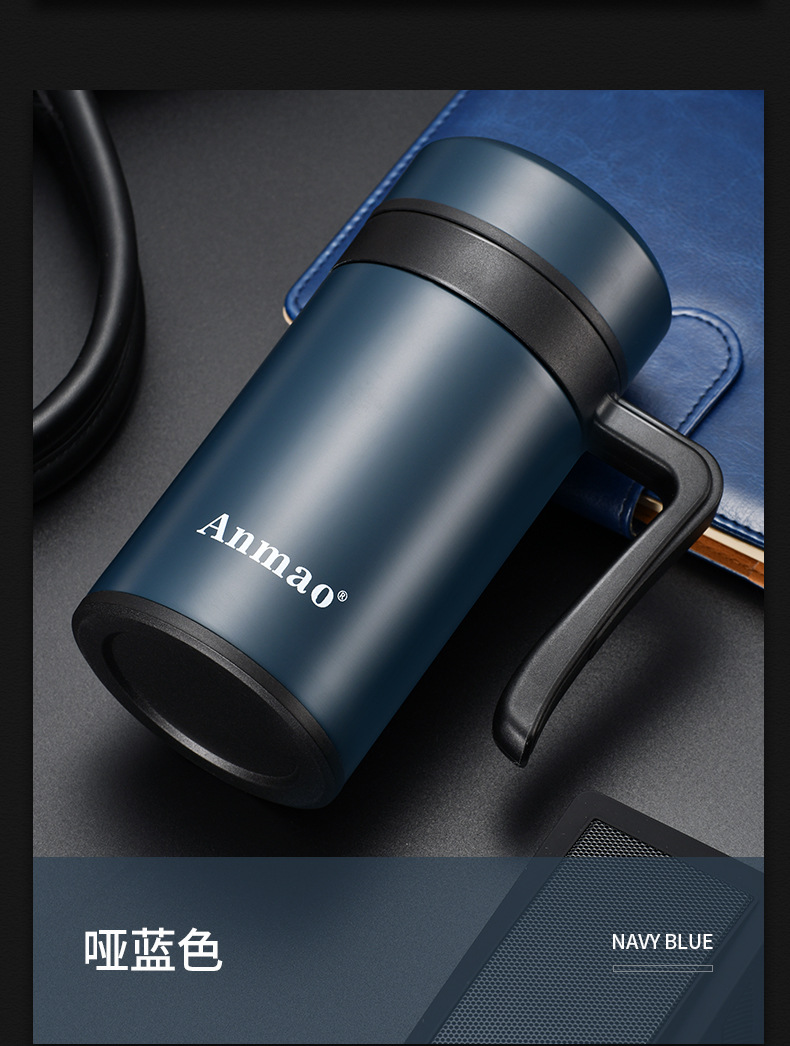 安茂双层304不锈钢保温杯办公带手柄过滤网泡茶杯子