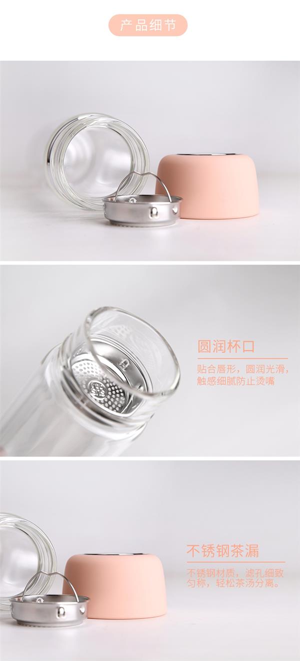 双层耐热高硼硅玻璃杯男女皮纹盖式泡茶水杯礼品