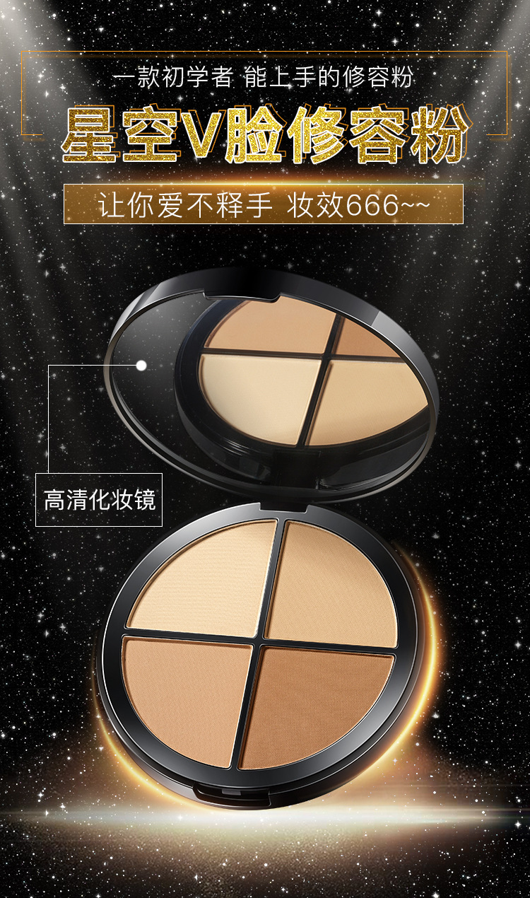 美茜儿网红星空立体V脸四色修容粉阴影鼻侧影高光美妆彩妆修容盘